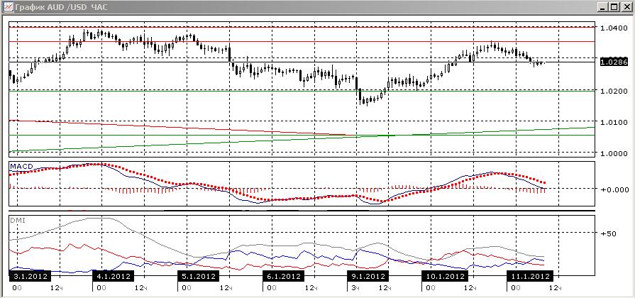 На дневном графике как и ранее рост продолжает оставаться предпочтительным, но движение пары замедляется. Возможно, что пара будет двигаться в пределах обозначенных ранее границах поддержки и сопротивления. Несмотря на предпочтительность роста, скорость роста в каждой восходящей фазе снижается. Это ставит под сомнение выход вверх в ближайшей перспективе. На четырехчасовом графике можно предположить, что дело идет к флэту: уровни DM+ и DM- совпадают, ADX снижается. Линия MACD колеблется между ростом и снижением, а гистограмма MACD около нуля. На часовом графике пара развернулась к снижению, что подтверждается индикаторами направленного движения. Однако снижение АDX и уже начавшийся рост гистограммы MACD показывает, скорее всего это нисходящее движение ослабнет.Уровни сопротивления: 1,0350; 1,0400