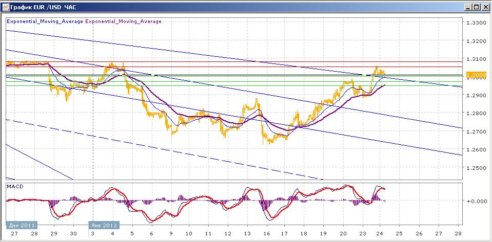 пара продолжает свой рост. В пятницу пара пережила небольшую коррекцию вниз, протестировав отметку 1.2900 и закрывшись чуть ниже нее. Вчера пара продолжала попытки удержания ниже 1.2900, но со второй половины пошла в уверенный рост, закрывшись в итоге чуть выше 1.3000. сегодняшние торги проходят на уровне открытия, средние скользящие ЕМА21 и ЕМА55 продолжают двигаться вверх, индикаторы MACD и RSI, кратковременно нырнув вниз, вчера снова вышли выше своих своих центральных линий и сегодня начинают немного снижаться. На сегодня цели вверх — 1.3050, 1.3080 Цели вниз на сегодня — 1.3000, 1.2970, 1.2950