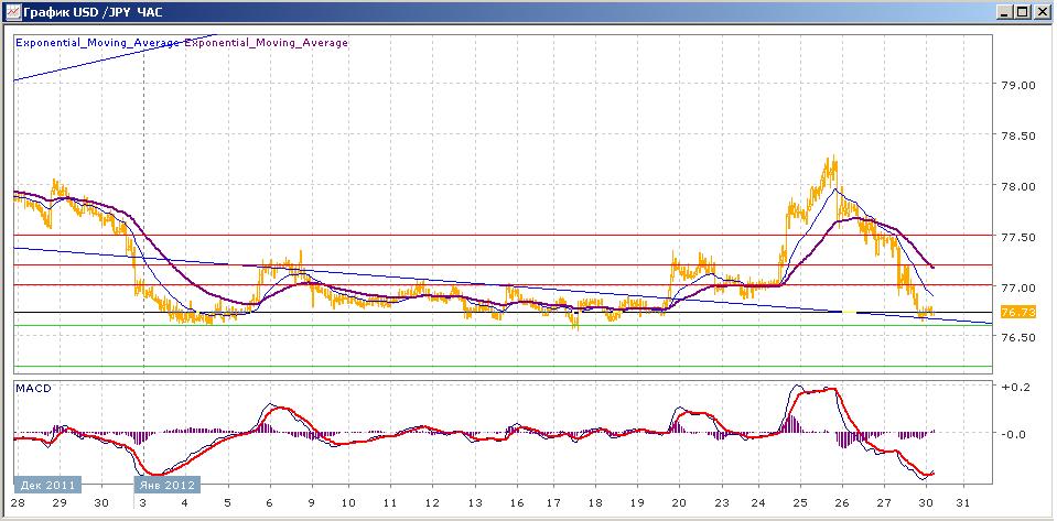 прошедшая неделя была отмечена попыткой роста пары, сумевшей кратковременно забраться выше уровня 78.00, но не закрепившейся на достигнутом. Конец недели пошел под диктовку продавцов, которые снова вернули пару ниже уровня 77.00, где пара и торгуется с начала сегодняшних торгов. Так что ситуация с парой, в целом не изменилась, пара снова ушла под отметку 77.00, где пребывала большую часть торгов этого года. Средние скользящие ЕМА55 и ЕМА21 снова пересеклись вниз и снижаются, Индикаторы MACD и RSI с четверга снижаются, находясь под своими центральными линиями и сегодня слабо растут. Цели вверх на сегодня — 77.00, 77.20, 77.50. Цели вниз —