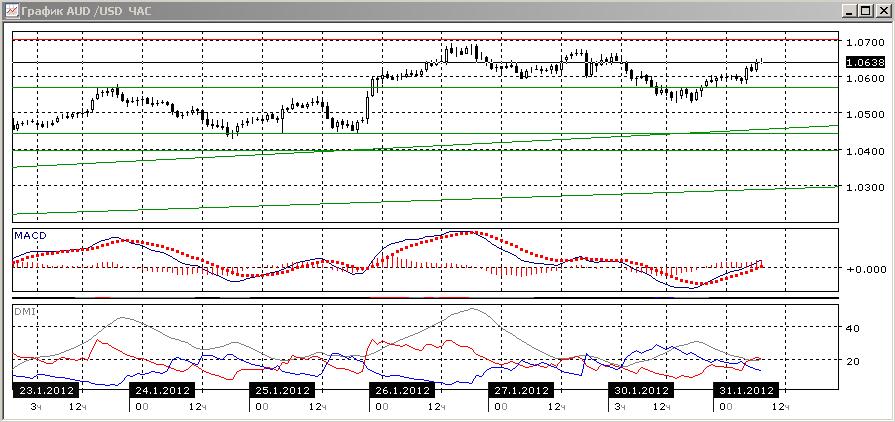На дневном графике продолжается замедляющийся рост, что подтверждается индикаторами ADX и MACD. Скорее всего, будет новая попытка тестирования уровня 1,0700.