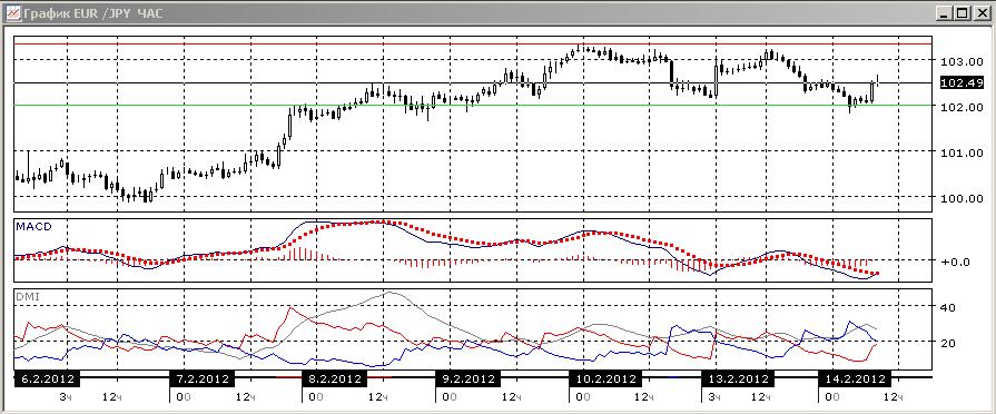 На часовом графике снижение еще более выражено, чем на часовом. В ближайшей перспективе — попытка преодоления уровня 102,00. Пр успехе целью видится уровень 100,90.