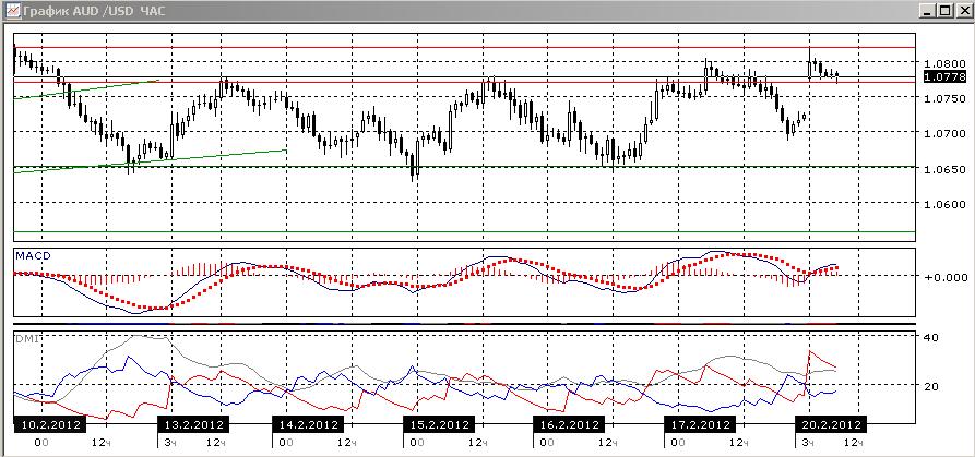 На дневном графике видно, что на пару может оказать влияние близость уровней сопротивления 1,0770 и 1,0820. Пока же ситуация флэта, скорее, сохраняется, вместе с противоречиями показаний индикаторов направленного движения: если по ADX пара растёт, то по линии и гистограмме MACD уже началось снижения.