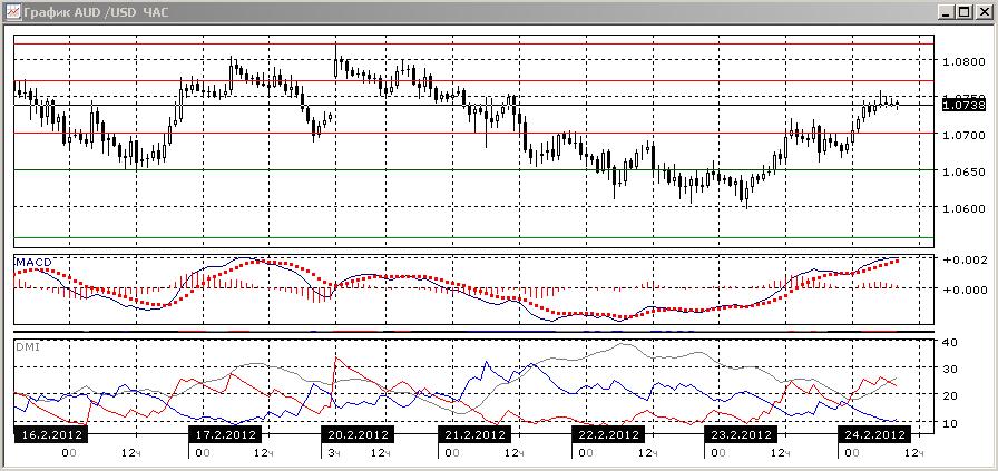 На четырехчасовом графике продолжается фаза роста в рамках движения в канале. Рост подтверждается и гистограммой MACD, и линией MACD. По ADX пара тоже перешла к росту.
