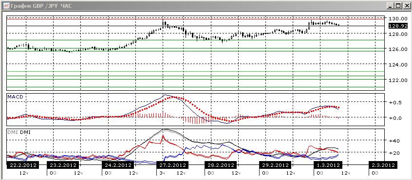 Пара сейчас ограничен уровнем поддержки 127,10, от которого она выросла, и уровнем сопротивления 129,80, который три раза не был преодолен за последние дни.