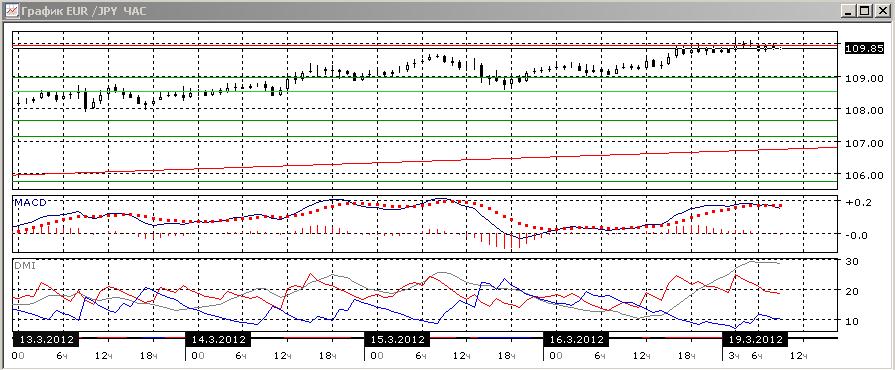 На часовом графике пара остановилась перед уровнем 110,00. Вероятно, тестирование этого уровня еще будет продолжаться.