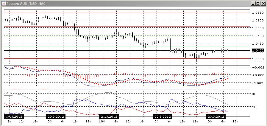 На часовом графике уровень 1,0425 место уровня поддержки стал уровнем сопротивления — перед ним рост пары остановился. Гистограмма MACD прекратила рост, а по ADX явной тенденции нет. Предпочтительным является снижение.