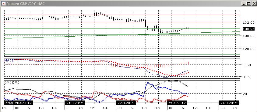 На дневном графике, таким образом, реализовалось медвежье расхождение максимумов гистограммы MACD и пары. По развороту вниз линии MACD и снижению гистограммы MACD можно говорить о переходе пары к снижению. Однако по ADX пара еще растёт, и тенденция не выглядит слабой. Дальнейшее, вероятно, будет определяться тем, какое воздействие на пару окажет линия тренда: в случае отскока возможно повторное тестирование уровня 133,00. В случае снижения ниже линии тренда возможной целью видится уровень 127,12.