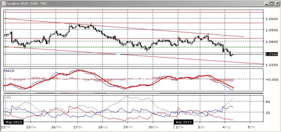 Пара пробила уровень поддержки 1,0350 и продолжила снижение сегодня на данных по дефициту торгового баланса Австралии.