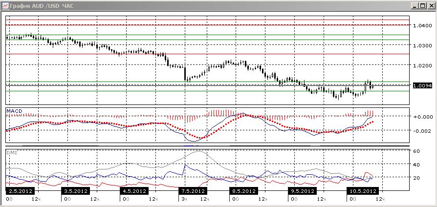 На часовом графике пара начала снижение от уровня поддержки/сопротивления 1,0115. Ситуация в этом масштабе менее определенная, чем в более крупных: с одной стороны, имеет место коррекция к снижению и пара последовательно растёт. С другой, снижение пары от уровня сопротивления может говорить о том, что коррекция уже кончилась. По индикаторам направленного движения предпочтителен рост, но тенденция слабая.