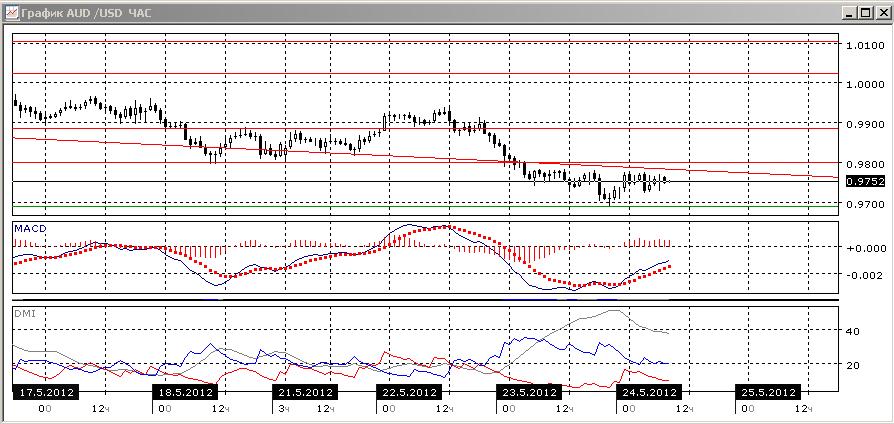 На четырехчасовом и часовом графиках пара пока остановилась между поддержкой 0,9690 и сопротивлением 0,9800. На четырехчасовом графике, как и на дневном, возможность роста отражает только рост гистограммы MACD, в остальном индикаторы направленного движения на стороне показывают на тенденцию к снижению. На часовом графике, скорее, ситуация флэта: пара движется в коридоре, индикаторы направленного движения показывают на разные направления.