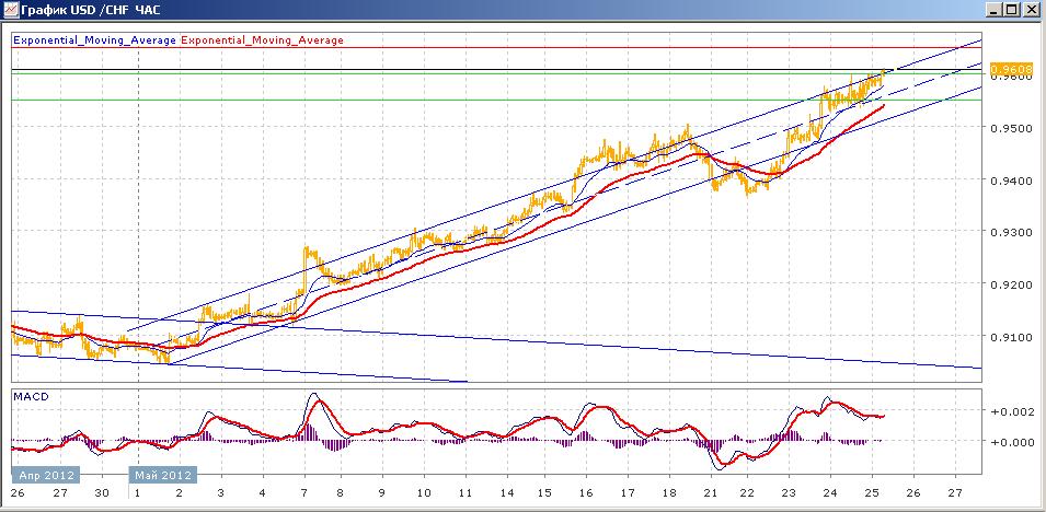 пара все также продолжает демонстрировать склонность к росту и торгуется около своего более чем 5-месячного максимума, на уровнях начала этого года. Ближе к концу торгов среду пара уверенно преодолела отметку 0.9500, добравшись до отметки 0.9550, а затем вчера медленно росла, вплотную подобравшись до отметки 0,9600. сегодня папа продолжает свой рост и преодолела уровень 0.9600, сейчас пытаясь закрепиться над ним. Средние скользящие ЕМА21 и ЕМА55 в целом направлены вверх и снова начали ускоряться. Индикаторы MACD и RSI со вторника находятся свыше своих центральных линий и сегодня немного склонны к снижению. На сегодня целями вверх станет отрыв от 0.9600 и движение к 0.9650. Движение вниз направлено на 0.9550