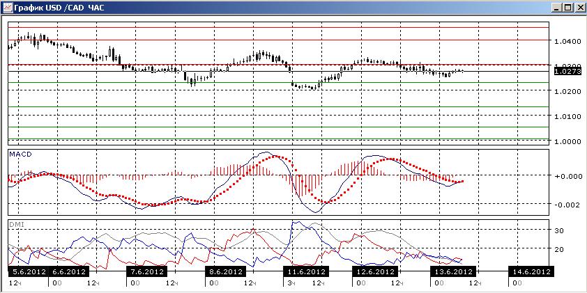 На дневном графике предпочтительного направления не видно. Индикаторы направленного движения противоречат друг другу: отрицательный наклони линии MACD и снижение гистограммы MACD показывают на снижение пары, некоторое превышение DM+ над DM- - на рост. В более широком плане пара находится между уровнями 1,0200 и 1,0300. Выход за эти пределы скорее и покажет направление.