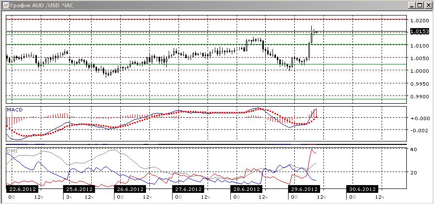 Уровень паритета вчера выступил для пары поддержкой, а сегодня на европейских новостях пара подошла близко к важному уровню сопротивления 1,0200, и немного откатилась от него.