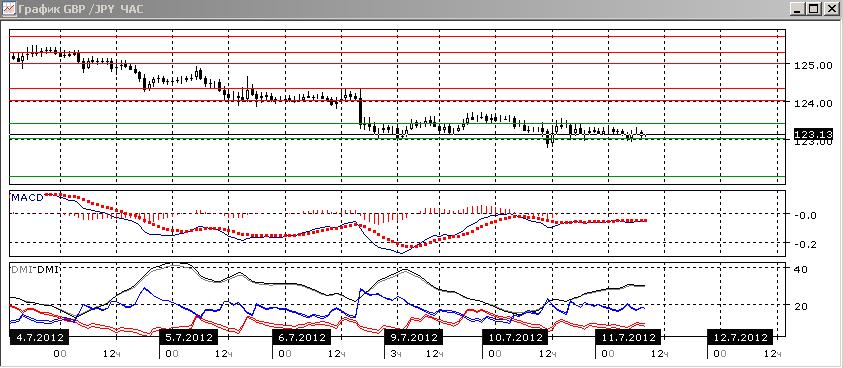 На четырехчасовом графике пара также снижается, пока продолжение снижения не очевидно. Уровень поддержки 123,00 — на уровне минимума начала . Поддержкой ранее выступил уровень 123,00, на минимумах конца июня, пока не преодолен, хотя не раз тестировался. Уровень 123,40 теперь выступает сопротивлением, который пара также не преодолела. Пока последовательность снижения относительных минимумов и максимумов не нарушена, и по ADX тенденция остаётся сильно выраженной. Предпочтительно снижение, но имеет смысл дождаться преодоления уровня 123,00.