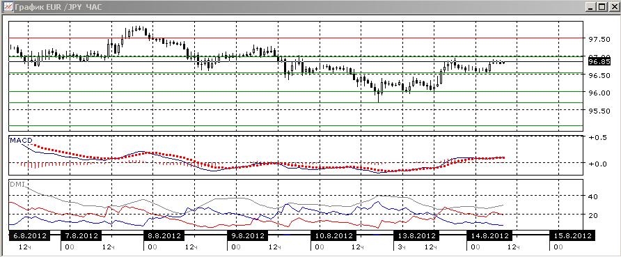 Пара выросла от уровня поддержки 96,50, однако уровня 97,00 пока не достигла.
