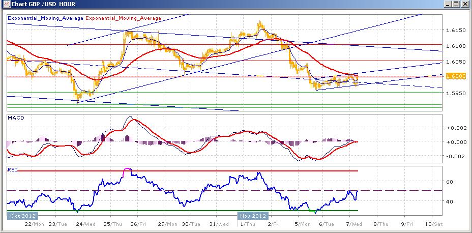 пара со второй половины понедельника медленно растет в достаточно узком канале. Вчерашний день прошел в давлении на уровень 1.6000, паре удалось показать сессионный максимум выше него, но закрепиться выше не удалось. Сегодня пара, после снижения в самом начале сессии, снова растет, пытаясь вновь преодолеть уровень 1.6000. Индикаторы MACD и RSI с пятницы находятся ниже своих центральных линий и сегодня склонны к слабому росту. На сегодня цели вверх — 1.6000, 1.6050 Цели вниз — 1.5950, 1.5900