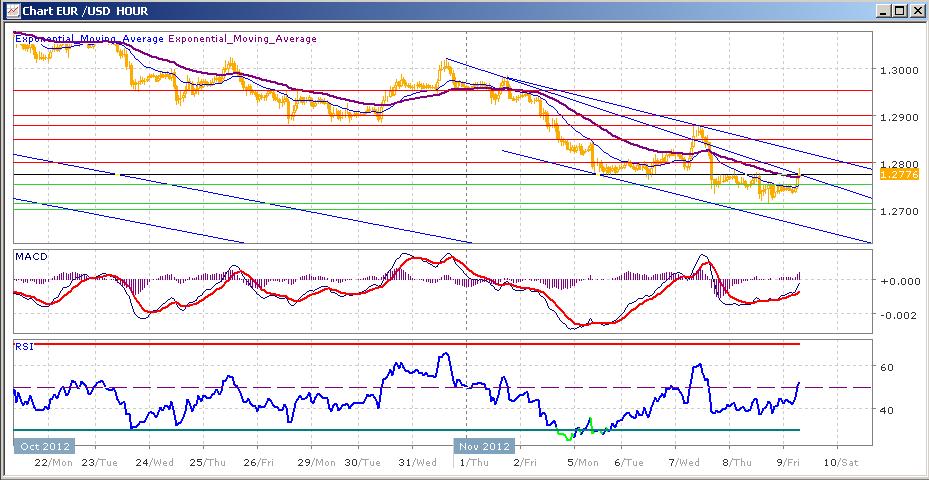 пара все также продолжает снижаться. После роста выше 1.2800 и попытки закрепления последовала коррекция вниз с закрытием ниже 1.2800 и последующим снижением вчера с закрытием ниже 1.2750. сегодняшние торги проходят с ростом пары., пытающейся преодолеть сопротивление нисходящей ЕМА55, ЕМА21 также снижается.. Индикаторы MACD и RSI в среду ушли своих центральных линий и растут. На сегодня цели вверх — 1.2800, 1.2850, 1.2880, 1.2900 Цели вниз на сегодня — 1.2750, 1.2713, 1.2700