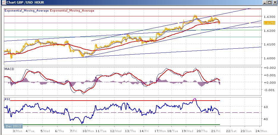 рост пары приостановился. В среду пара вышла вверх из восходящего канала, показав свой новый максимум выше уровня 1.6300, но не удержалась и снизилась до 1.6250. вчера поддержка на 1.6250 неоднократно тестировалась вниз, но пара завершила сессию ростом. Сегодня торги проходят со снижением пары, которая снова проверяет на прочность 1.6250. Средние скользящие ЕМА21 и ЕМА55 направлены вверх, но замедляются. Индикаторы MACD и RSI сегодня ушли ниже своих центральных линий. На сегодня цели вверх — 1.6300. Цели вниз — 1.6250, 1.6150