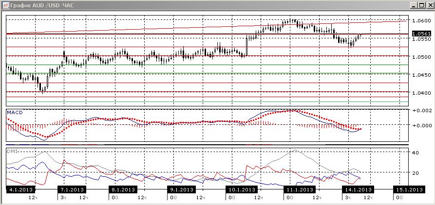 На четырехчасовом графике видно, что пара получила поддержку на уровне 1,0525 и сейчас находится на уровне линии сопротивления 1,0560. В случае, если пара не снизится, более вероятным становится рост до бывшей линии тренда, рядом с которой будет уровень 1,0600. По индикаторам направленного движения тенденция видна по ADX, так DM+ все еще выше DM-, коррекционное движения до 1,0525 отражается в снижении гистограммы MACD и разворотом вниз линии MACD. Скорее предпочтителен рост.