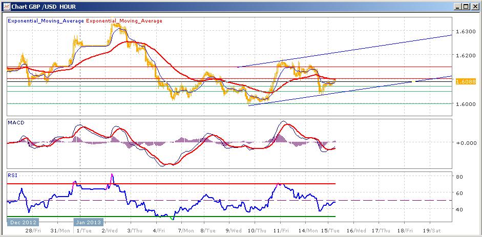 После сильного роста в четверг на 150 пунктов в пятницу пара немного скорректировалась вниз, протестировав вниз уровень 1.6100 и закрывшись в районе 1.6120. вчера снижение продолжилось, пара ушла ниже 1.6100, получив поддержку на 1.6050 с закрытием чуть ниже 1.6100. сегодняшние торги проходят на уровне открытия, пара нацелена на рост и тестирование уровня 1.6100. Средние скользящие ЕМА21 и ЕМА55 пересеклись вниз и снижаются, подавая признаки замедления. Индикаторы MACD и RSI вчера снова ушли ниже своих центральных линий и сегодня показывают рост. На сегодня цели вверх — 1.6100, 1.6150. Цели вниз — 1.6070, 1.6050, 1.6000