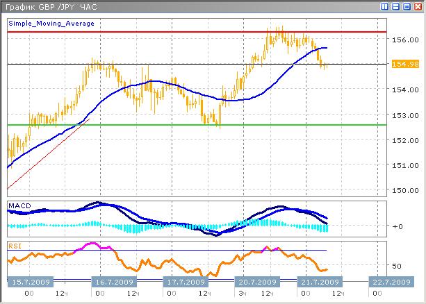 Текущая обстановка на фондовых рынках толкает цены вверх по паре, в среднесрочной перспективе ожидается рост, после не глубокой коррекции. В краткосрочной перспективе, однако, в ближайшее время ожидается развитие медвежьей тенденции. Укрепление иены против доллара на фоне волатильности на фондовых рынков и выхода неожиданно слабых данных активности в непроизводственной сфере, послужило причиной к снижению пары. Технические средства прогнозирования указывают на предстоящее замедление темпов снижения и разворот, гистограмма осциллятора MACD формирует локальный минимум. В то же время, график индикатора RSI приближается к средней линии снизу вверх. Среднесрочная цель находится у отметки 156.30, первый уровень сопротивления, который может быть взят к концу этой недели.