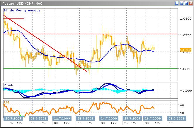 Пара продолжила торги в боковом тренде, что было ожидаема, и вероятно, такая динамика продолжится еще некоторое время. Медведи не пробили сильный уровень поддержки 1.0650, тем не менее, франк едва ли удержится на высоких позициях против доллара США. Уровень 1.0750 удержал покупателей, данное событие совпало с восстановление фондового рынка США, в дальнейшем, ожидается продолжение аналогичных реакций на динамику глобальных рынков. Снижение начинает постепенно замедляться, и к концу недели ожидается разворот тренда, или по меньшей мере его коррекция. Европейский банковский сектор все еще находится под давлением инвестиционных убытков, которые будут покрыты не скоро, даже не смотря на текущий рост рынков. Согласно данным технических индикаторов, ожидается не глубокая коррекция в краткосрочном плане, или, по меньшей мере, резкое замедление снижения и боковой тренд.