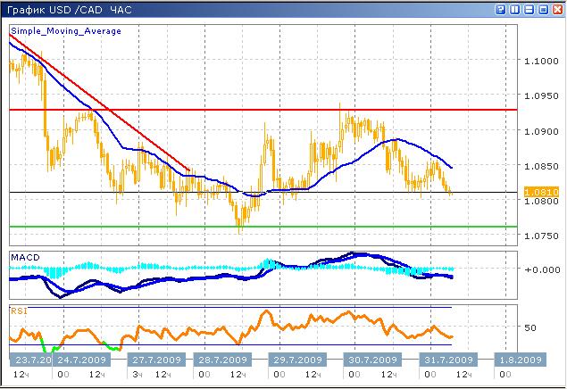 Возрастающий тренд достиг уровня сопротивления 1.0930, ненадолго превысив эту отметку, быки все же сдали позиции, в результате чего цена стремительно упала. Ранее данный уровень не тестировался в качестве уровня сопротивления. Технические индексы указывают на продолжение краткосрочной коррекции нисходящего тренда, предположительно к отметке 1.0750. Осциллятор MACD сигнализирует о возможном затишье в конце торговой недели, однако, колебания между уровнями выглядят весьма не надежно, в среднесрочной перспективе ожидается снижение пары. График индикатора RSI колеблется у средней линии, тем самым, указывая на отсутствие инициатив с обеих сторон. Тем не менее, в настоящий момент, рекомендуется воздержаться от продаж, поскольку в краткосрочном планировании возможно еще одно тестирование уровня сопротивления.