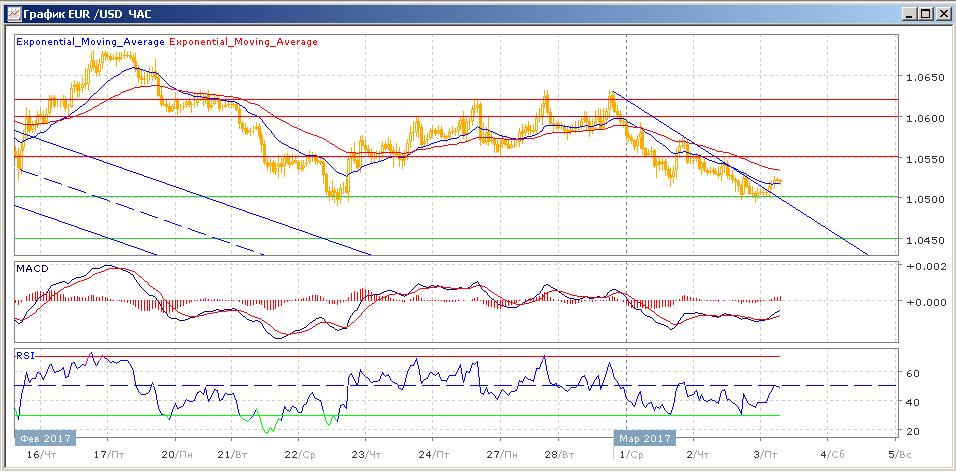 Цели вверх: 1.0550, 1.0600, 1.0620. Цели вниз: 1.0500, 1.0450