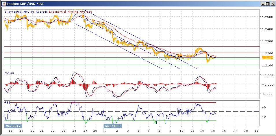 торгуется все также выше 1.2150. Средние