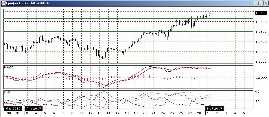 На четырёхчасовом графике рост продолжается, но он замедляется: новые максимумы не подтверждаются по гистограмме MACD. Последовательность роста относительных максимумов и минимумов в целом сохраняется. После образования разворотной свечной комбинации с «падающей звездой» у 1,37 разворота не было, что скорее подтверждает импульс роста. Риск отката сейчас увеличивается, но в целом рост остаётся предпочтительным.