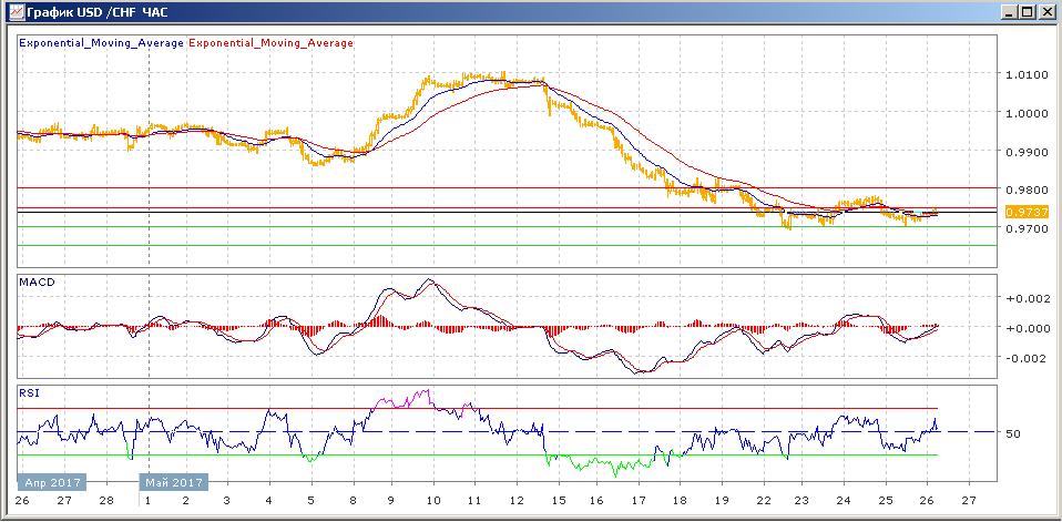 стабилизация пары продолжается. Попытка в среду закрепиться выше 0.9750 оказалась неудачной, пара закрылась со снижением, вернувшись в диапазон 0.9700-0.9750. вчера торги завершились почти без изменений, пара снова нашла поддержку на 0.9700. сегодняшние торги проходят со слабым ростом пары. Средние скользящие ЕМА21 и ЕМА55 пересеклись вниз и снижаются. но готовы к пересечению вверх. Индикаторы MACD и RSI готовы выйти выше своих центральных линий. Цели вверх: 0.9750, 0.9800. Цели вниз: 0.9700, 0.9650